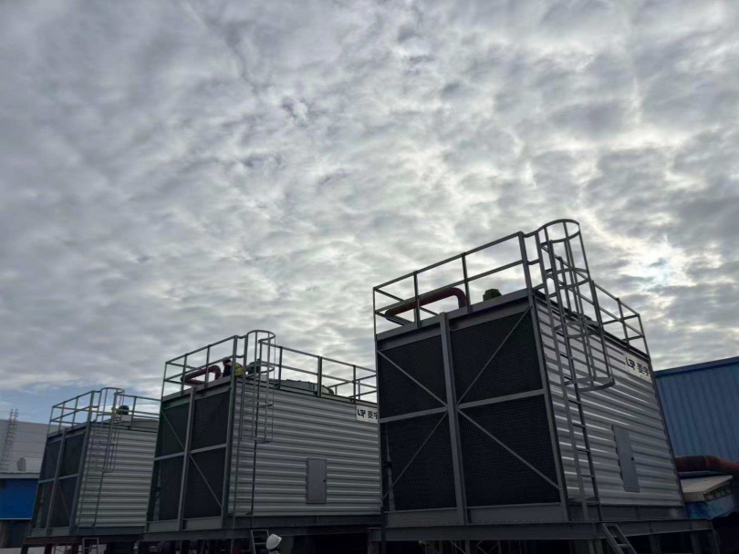 湖北武汉某工厂采用菱宇方形横流式钣金冷却塔服务于现场的工业设备。