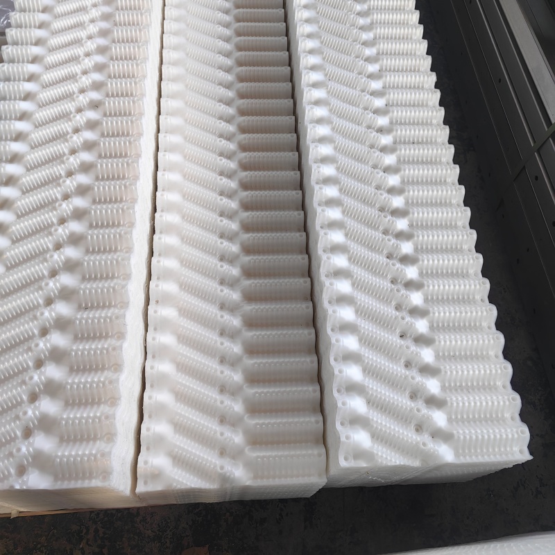 菱宇高温型方形逆流式钣金冷却塔的PP填料,执行的是片距为19,高度为305,长度任意长的填料,这样的高温填料可以让菱宇方形逆流式高温型钣金冷却塔达到更好的冷却效果,菱宇高温型的方形逆流式钣金冷却塔的填料区别于冷却塔市场上常见的片距为30,尺寸为500*1000的S波填料。