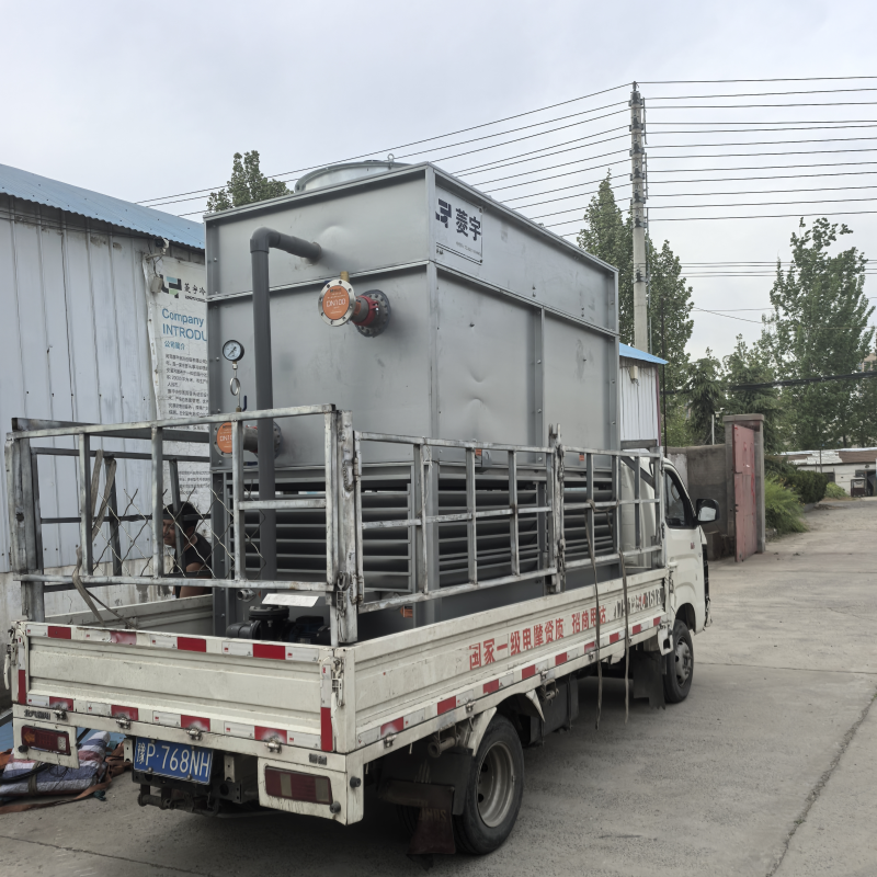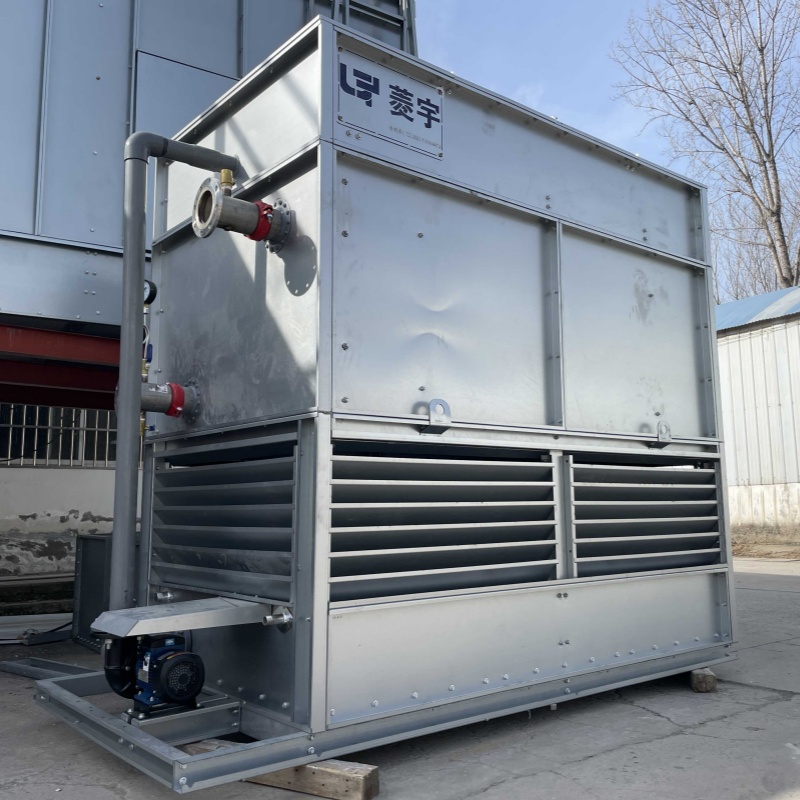 闭式冷却塔简单的理解就是,在开式冷却塔的基础上,增加了一个封闭的散热器,开式冷却塔的循环水负责给封闭散热器内部的水来降温,而客户现场使用的冷却水是封闭散热器内部的纯净水,这样一来,闭式冷却塔的型号一定要大于开式冷却塔型号,闭式冷却塔的型号绝对不能小于开式冷却塔的型号。