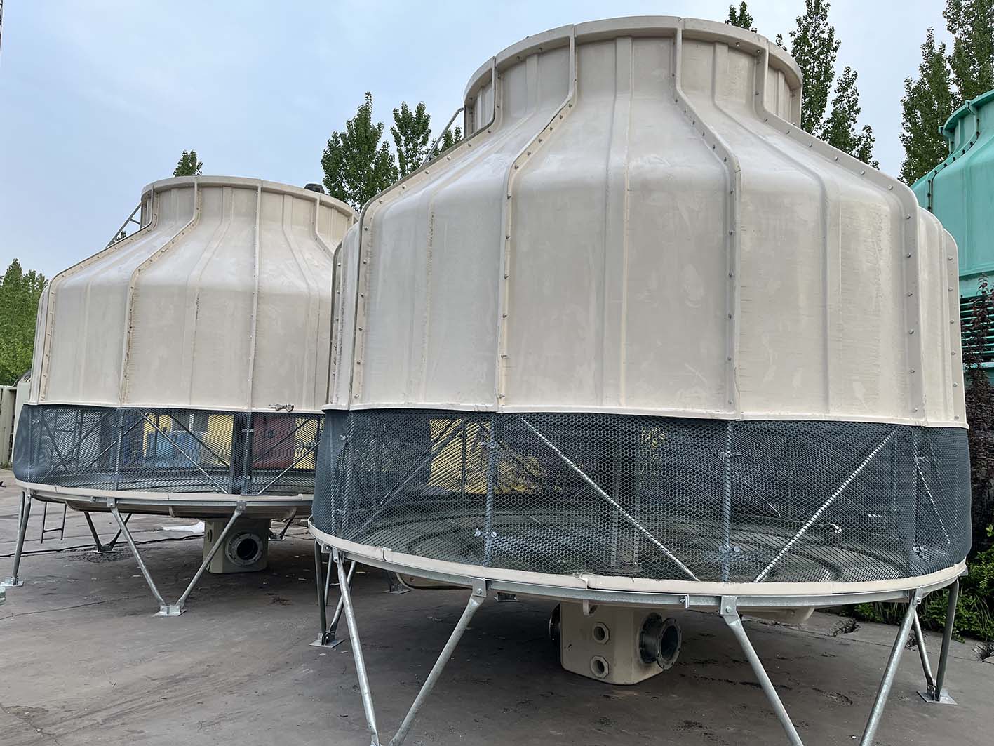 圆形逆流式冷却塔采用玻璃钢外壳及底盆,配以全新PVC填料,小巧看起圆呼呼的塔体非常可爱,即美观又实用。如果企业设备冷却水量不大,可以考虑此类型的塔。